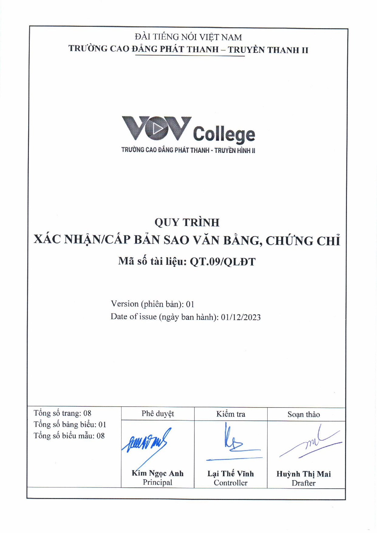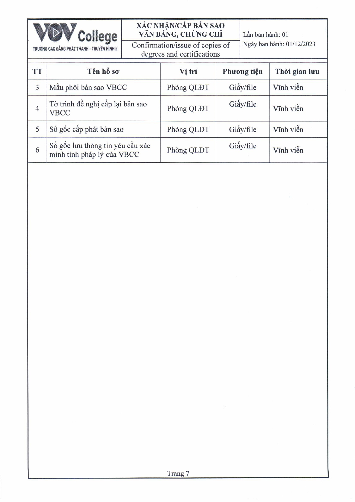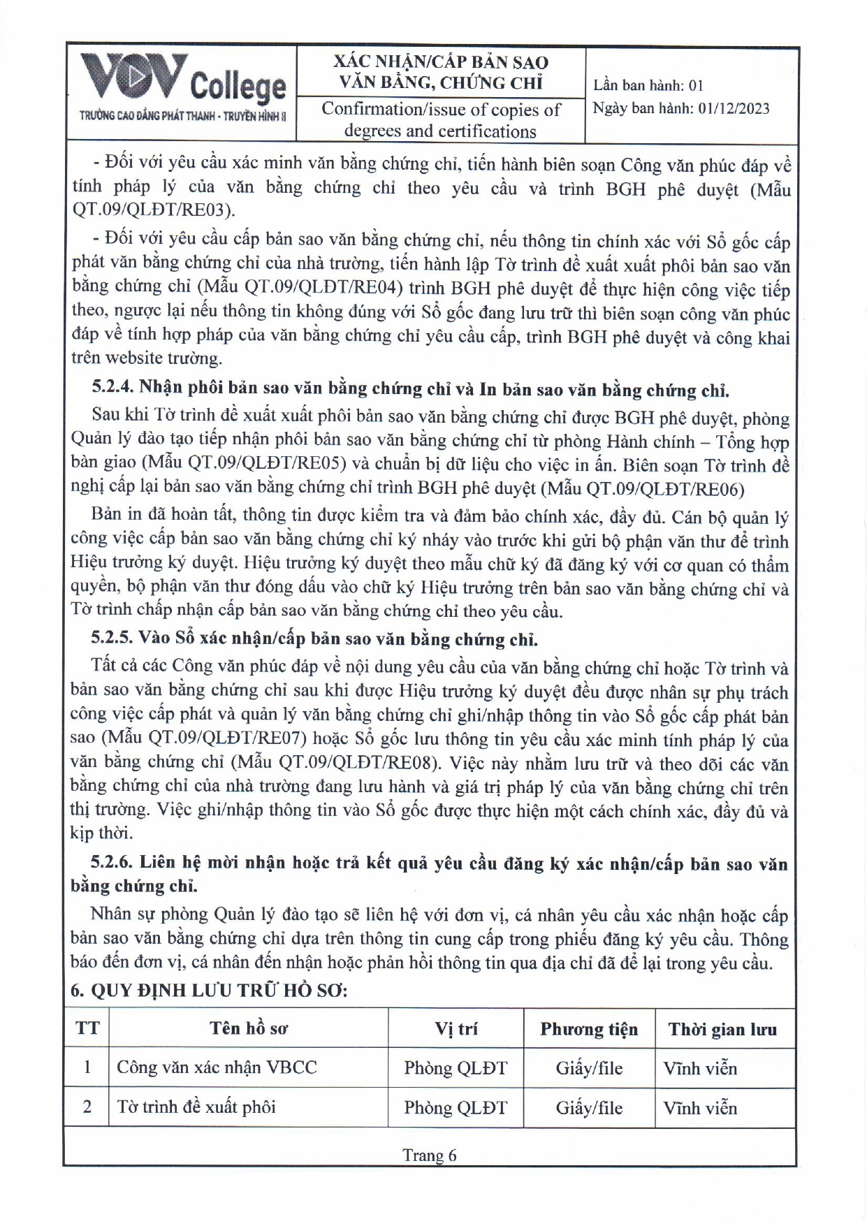 Quy trình xác nhận/ cấp bản sao văn bằng, chứng chỉ (Tải về)